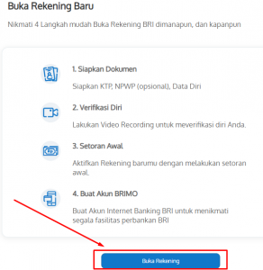3. Selanjutnya Sobat akan mendapatkan informasi alur pendaftaran BRI digital saving melalui 4 langkah mudah. Di sini Sobat silahkan mengklik ‘buka rekening’ lagi.