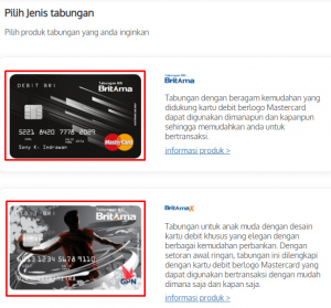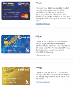 4. Silahkan memilih jenis tabungan yang Sobat inginkan. Sobat bisa membaca lebih lengkap pada penjelasan produk. Jika pilihan sudah okey, silahkan klik di logo kartu. Jangan di bagian informasi produk ya.